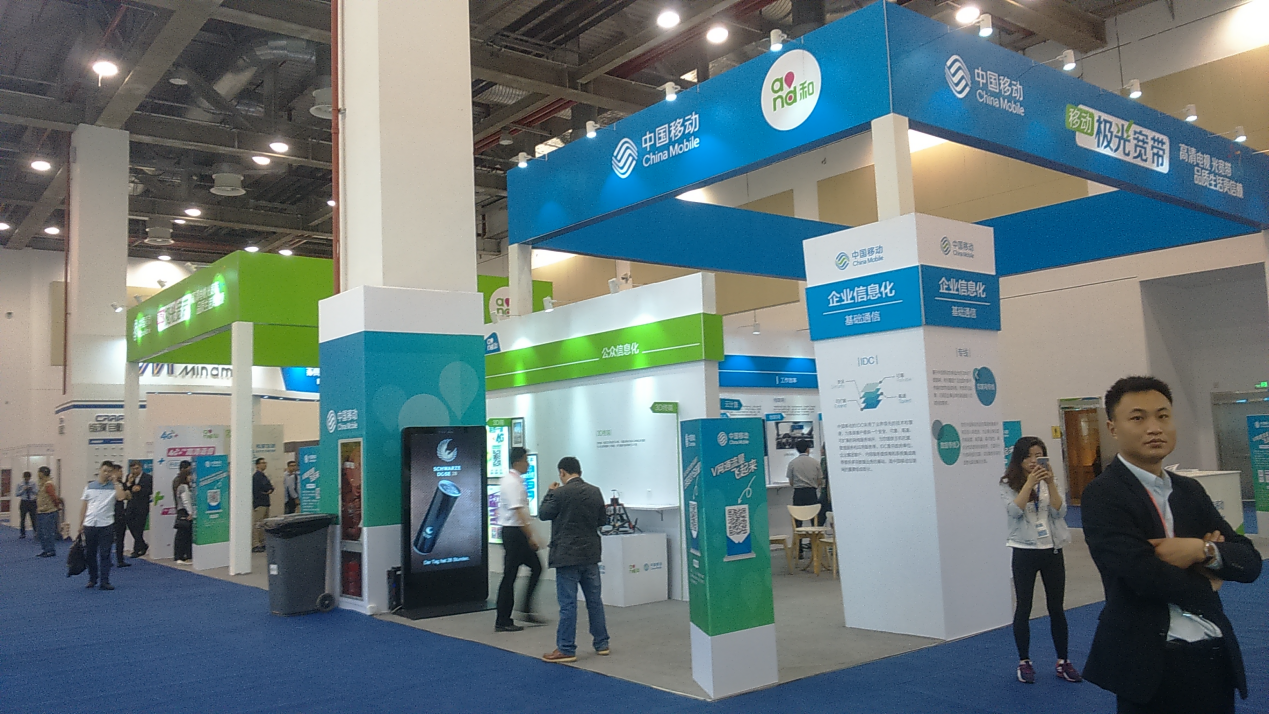 本屆展會共計500家企業參展、展位數超1500個,使用面積達40000平方米。中國移動作為三大運營商之一,在眾多展位中毋庸置疑地占據著重要位置。