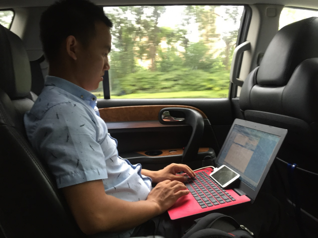 兩位外場測試工程師負責東南大學九龍湖校區的現場保障工作。出發前,其仔細檢查了所需設備,包括一臺電腦、一個充電寶、一個GPS、三部測試手機、三根數據線。在確認設備齊全后,他們便立刻打開測試軟件連接手機,從南京聯通新時空大廈一路測至東南大學,一旦發現有掉話或者上網速率慢的地方,當即分析原因,并在到達東南大學的時候,將這一路的測試LOG保存發送給后臺分析組進行分析。